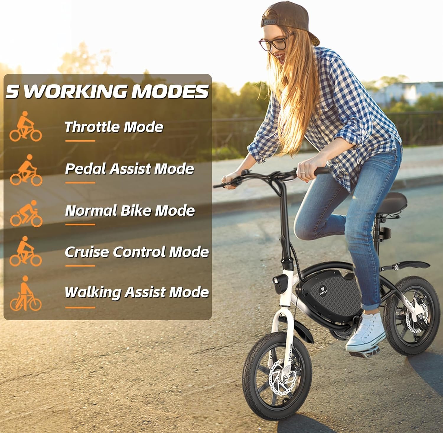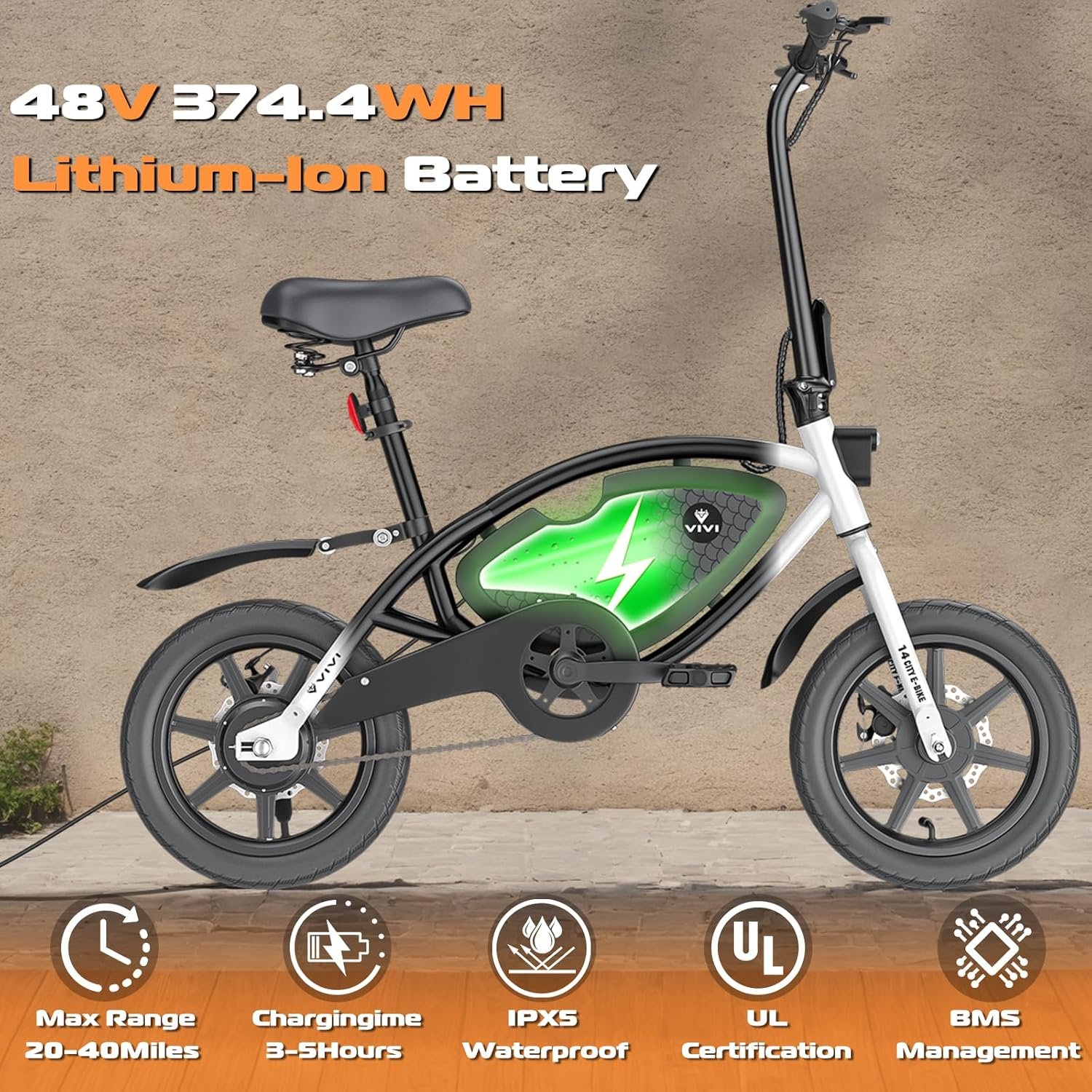 Vivi PONY01 Electric Bike, 14″ Electric Bicycle for Adults and Teens Peak 500W Motor 48V 374.4WH Battery, Max 40 Miles Range(Pedal-Assist) & Top 20 Mph, Cruise Control, UL 2849 Certified, Ages 13+