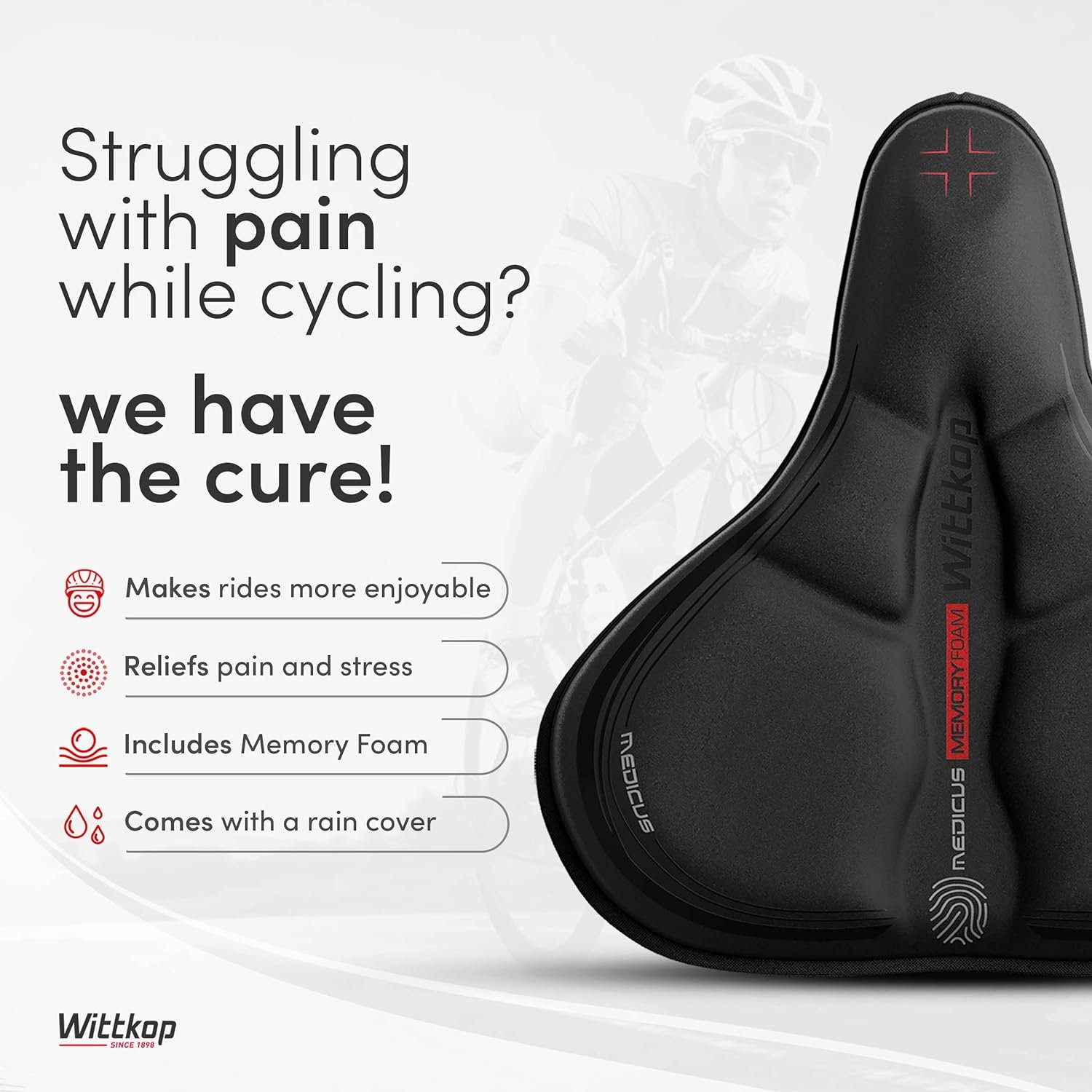 COMFORT 5 ZONE CONCEPT – Your Wittkop bike seat cushion offers you a very pleasant riding experience that is rich in comfort and convenience thanks to its innovative 5-zone concept and anatomically shaped gel insert.