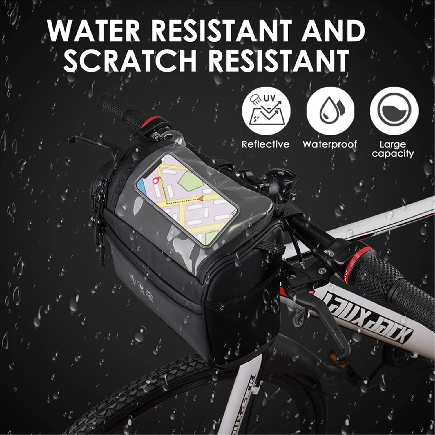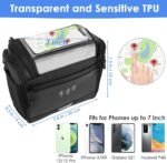 Sensitive Touch Screen — On the top of the bicycle basket bag , there is a large transparent TPU waterproof window with a dimension of 7 x 5 inches, fit for all kinds of cellphones up to 7inch. The clear high sensitive TPU makes it easy to slide unlock to answer phone calls and use the navigation while riding.