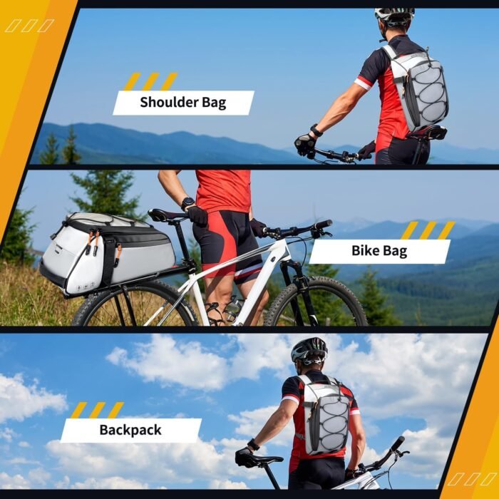 3-in-1 Multifunctional Bike Bag — More than just a bicycle bag, the bike trunk bag transforms into a backpack with integrated shoulder straps. When using the detachable shoulder strap, the bike pouch can also serve as a commuter bag. With a comfortable and spacious handle, it can be used as a handbag, offering versatile and flexible functionality