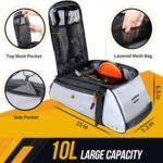 10L Large Capacity — With dimensions of 15 x 7.3 x 6.5’’ (38 x 18.5 x 16.5 cm), the cargo carrier bag accommodates clothing, a phone, charger, wallet, cables, headphones, power bank, map, or other essentials during rides. The includes a main compartment, two side pockets, a top zipper pocket, and two inner mesh pockets for organized storage