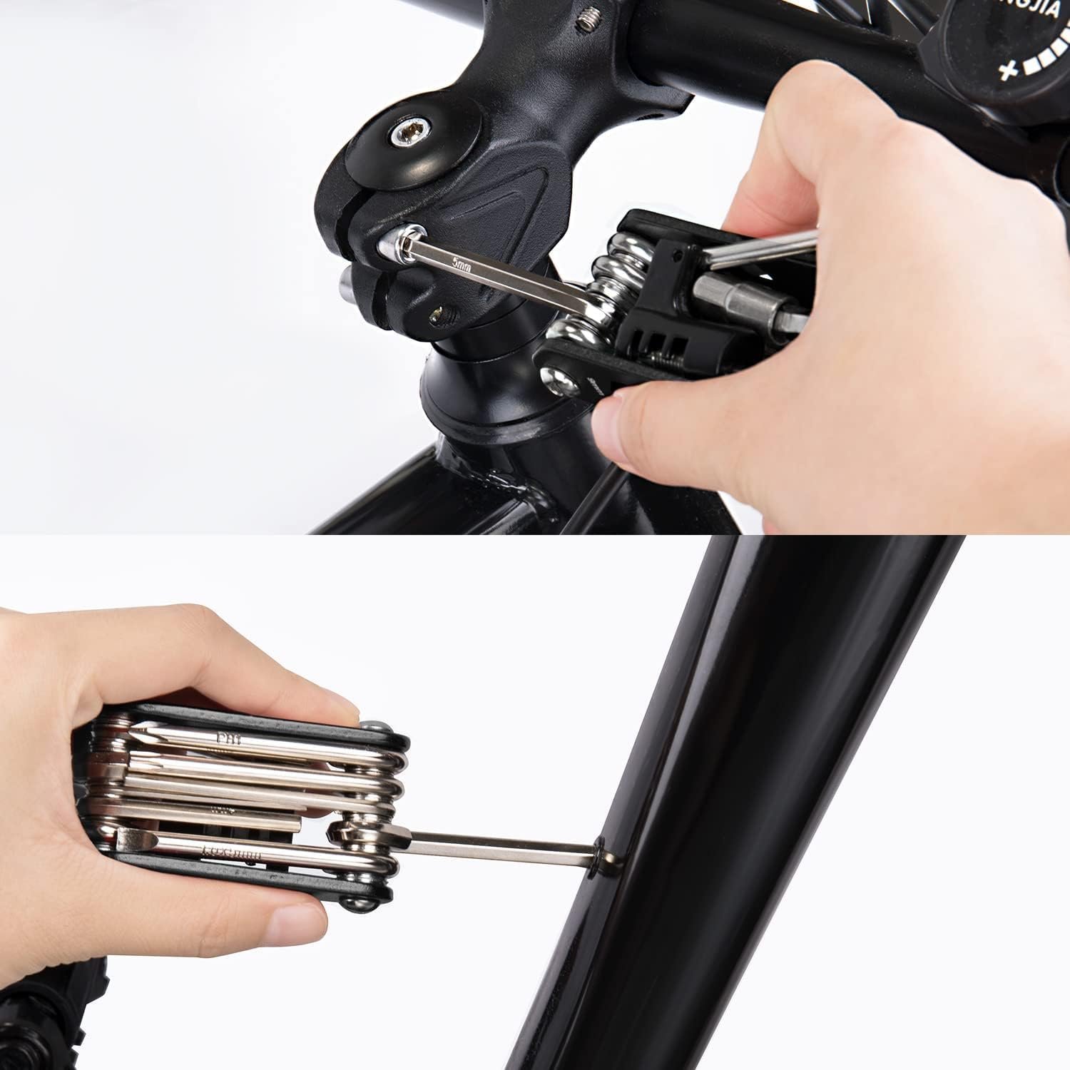 Sturdy and Compact Multitool — Made from high-tensile harden CR-V Steel, the 14 in 1 multi too was designed to last. Slimline profile of Length: 3” and Width: 1.5’’ make it easy to store in the bike bag or carry anywhere. A handy bike repair kits for cyclists, also as daily household repair tools for basic maintenance works