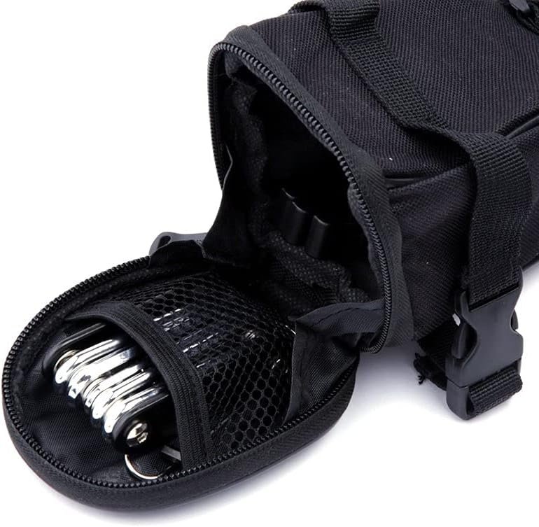 Roomy Bike Seat Bag — The aerodynamic wedge shape seat tail pouch with an inside main pocket and auxiliary mesh pocket. Not only all the tools can be filled in the seat pack and attached to saddle of bike for travel, but also can store small items like keys, tissue etc