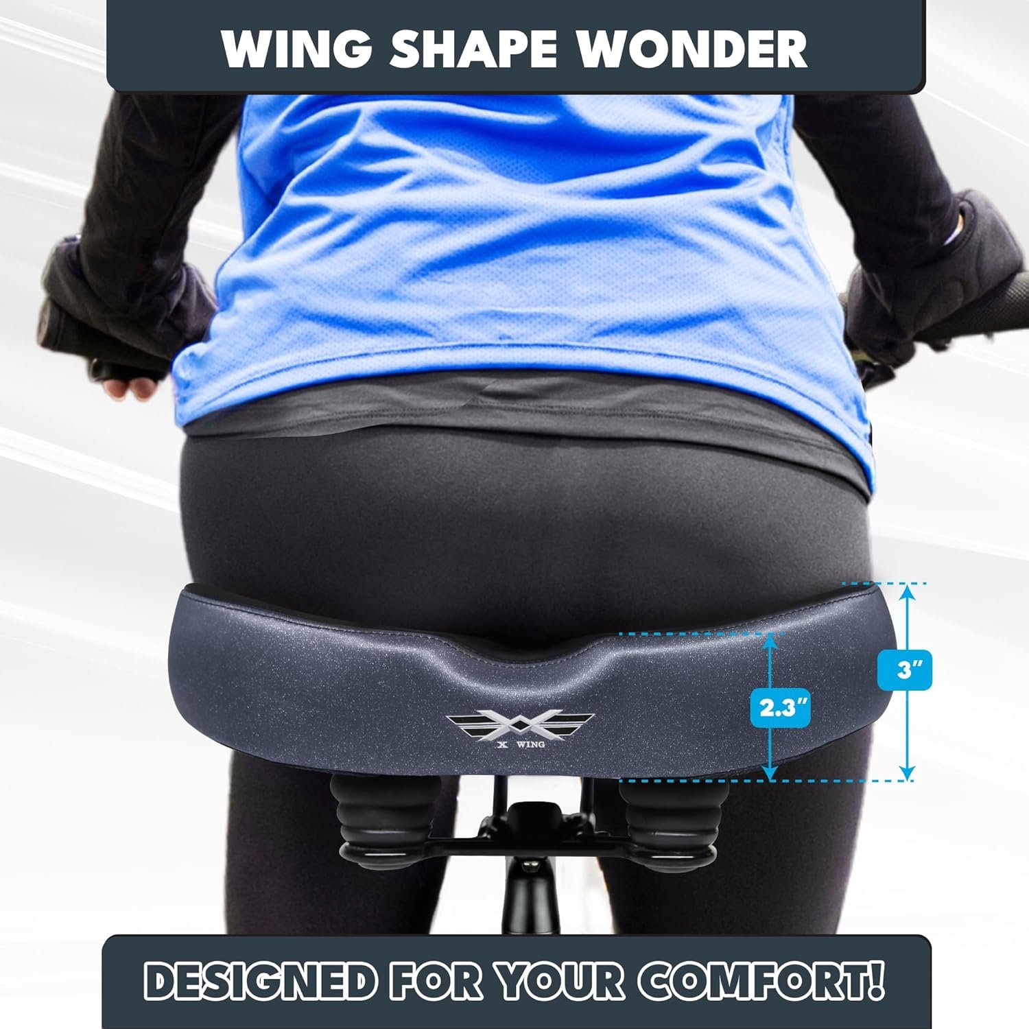 [WING Shape Wonder] – Our patented WING Shape design significantly extends contact surfaces, reducing pressure. 7.4” (L) x 12.7” (W) x 5.3” (H) gives lots of surface area. Take control of your cycling journey with no compromise between comfort and long rides.