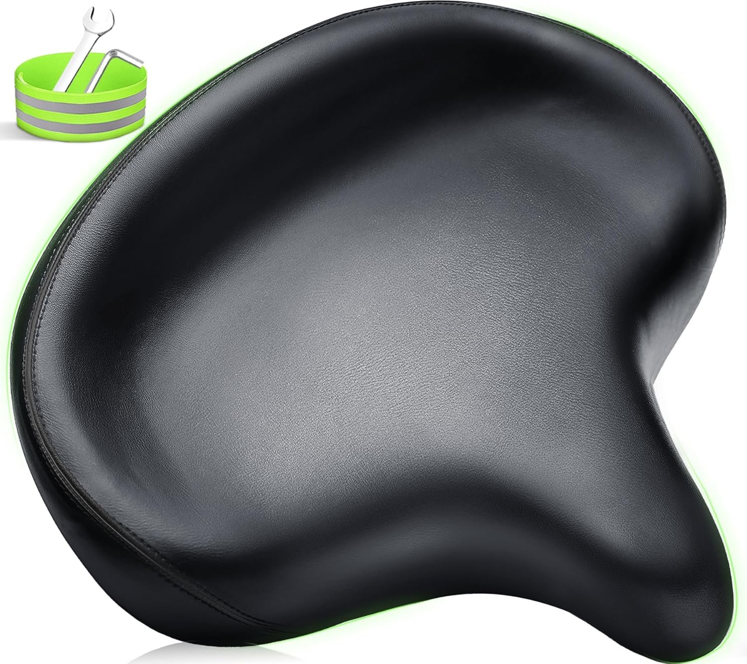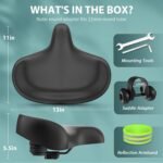Comfort Bike Seat for Women Men,Wide Bicycle Saddle Replacement Memory Foam Padded Soft Bike Cushion with Dual Shock Absorbing Universal Fit for Indoor/Outdoor Bikes with Reflect