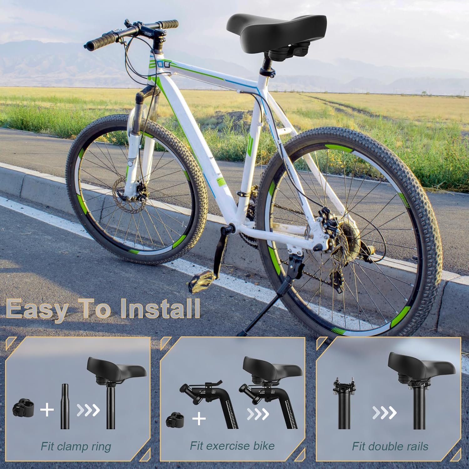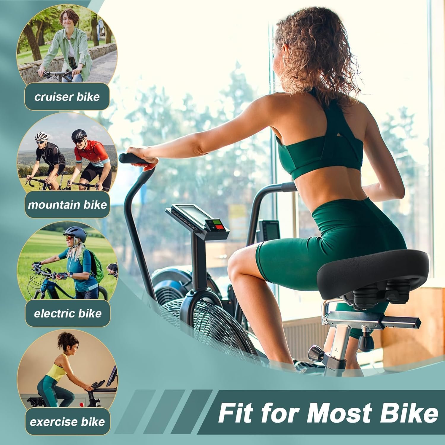 Bicycle Seat, Wide Bike Seat for Men Women, Comfortable Memory Foam Sweatproof Essential Bike Saddle -Dual Shock Absorbing-Best Bike Seat Replacement for Exercise Bikes, Mountain Bikes