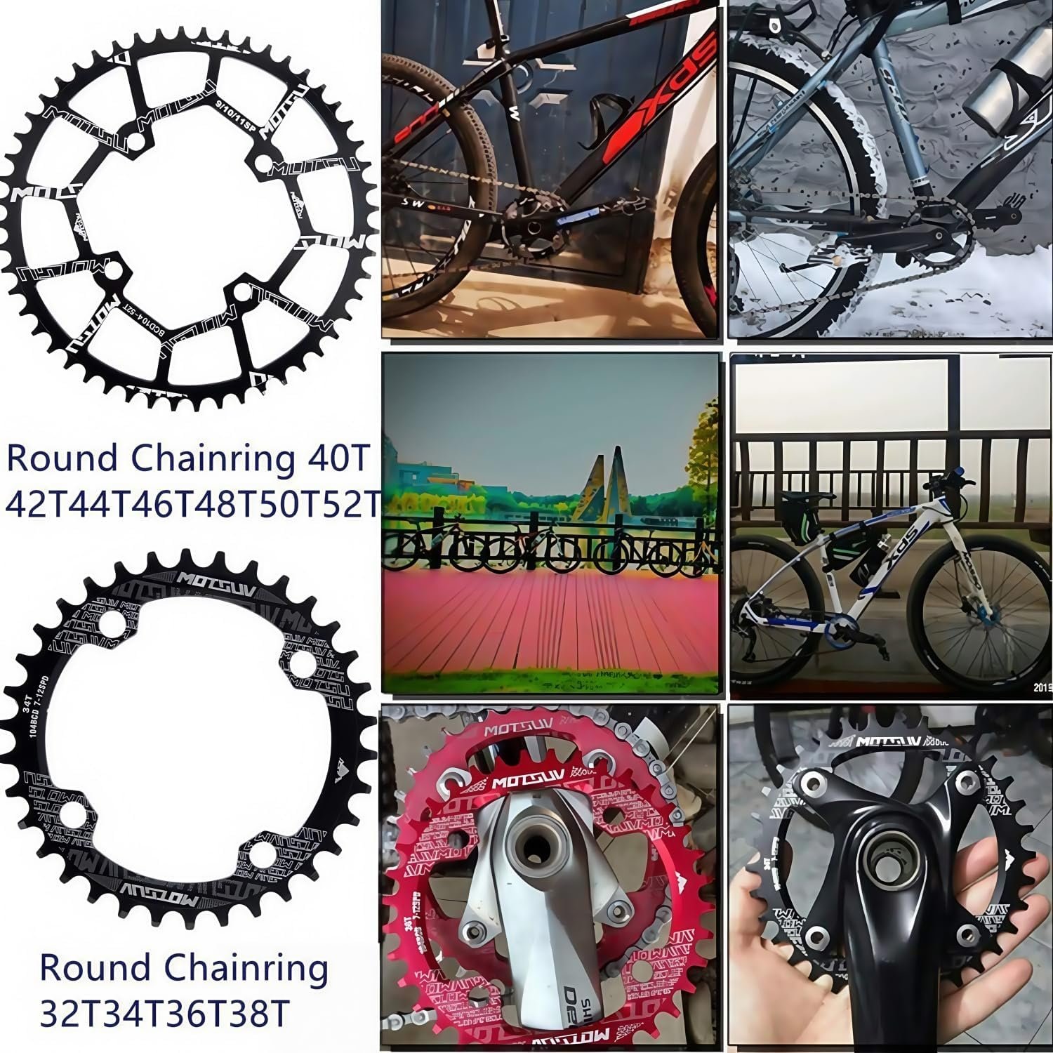 1.🔧【Aerospace-Engineered 7075-T6 Alloy】7075-T6 Aluminum Alloy – 572MPa tensile strength (30% stronger than 6061), ✓ 5-Axs CNC Machined – ±0.01mm tooth tolerance (ISO 13041 certified), ✓ Military-Grade Hard Anodization – HV800 surface hardness (3x wear resistance), ✓ Compatibility: Compatible with 104BCD Single Bike Chainring Shimano/SRAM 8-11 Speed MTB/Road Bikes
