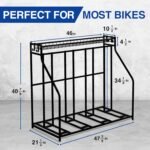 SPACE SAVING DESIGN: Bicycle rack for garage features a space-saving design that allows to store multiple bikes, including road bikes, mountain bikes, hybrid bikes, adult bikes; Bike floor stand can be used both indoor and outdoor