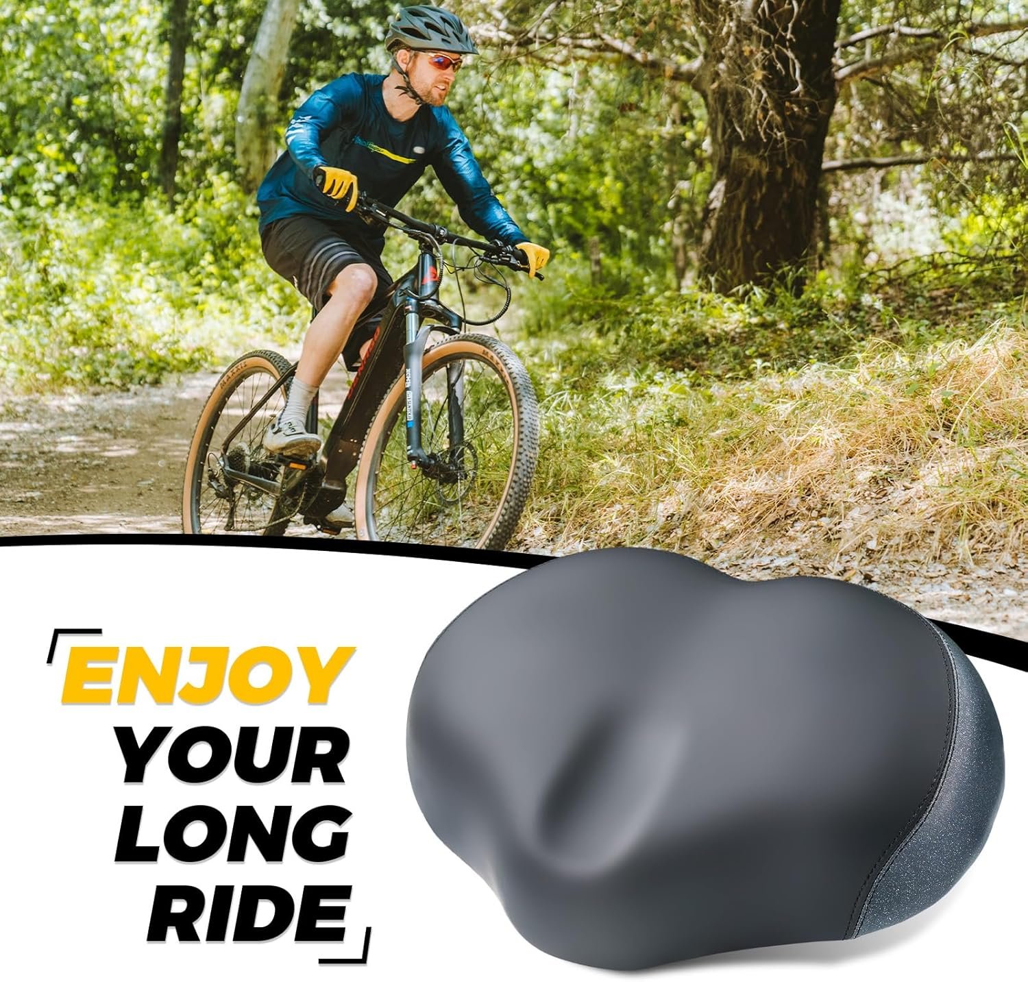 Upgrade your cycling experience with the YLG Noseless Bike Seat, designed for both men and women. This wide, thick-cushioned saddle offers superior comfort and support for long rides, reducing pressure on sensitive areas thanks to its innovative noseless design. Whether you’re riding a Peloton, road bike, or electric bike, this saddle provides dual shock absorption for smoother rides on any surface. The waterproof IPX4 design keeps your seat dry in all weather conditions, while the thick foam and PU leather construction ensure durability and support for all riders. With easy installation and universal compatibility, this seat is perfect for upgrading any bike.
