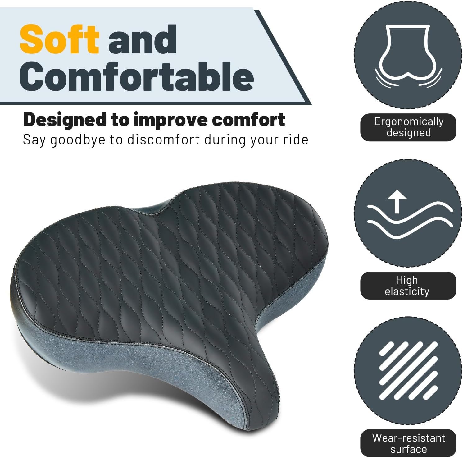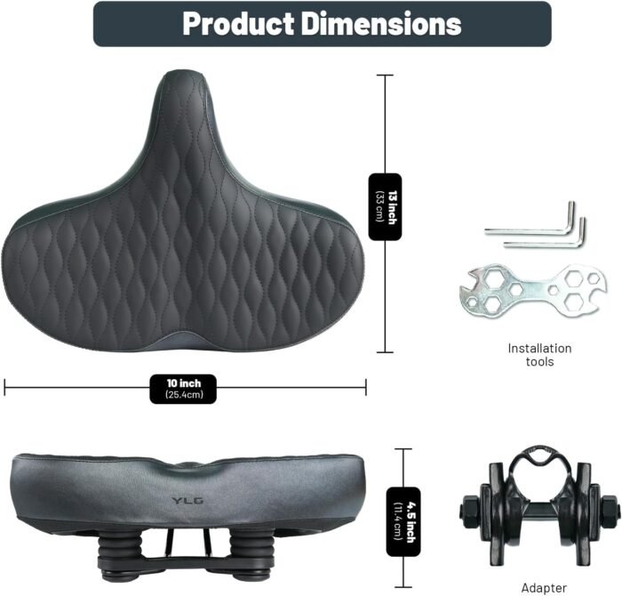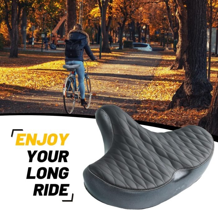 Extra Wide and Comfortable – YLG 2025 NEW oversized bike seat measures 13″ wide and 10″ long, providing extra space and support for people needing more comfort. Perfect for Peloton, electric bikes, exercise bikes, spinning bikes, cruiser bikes, e-bikes, and adult tricycles