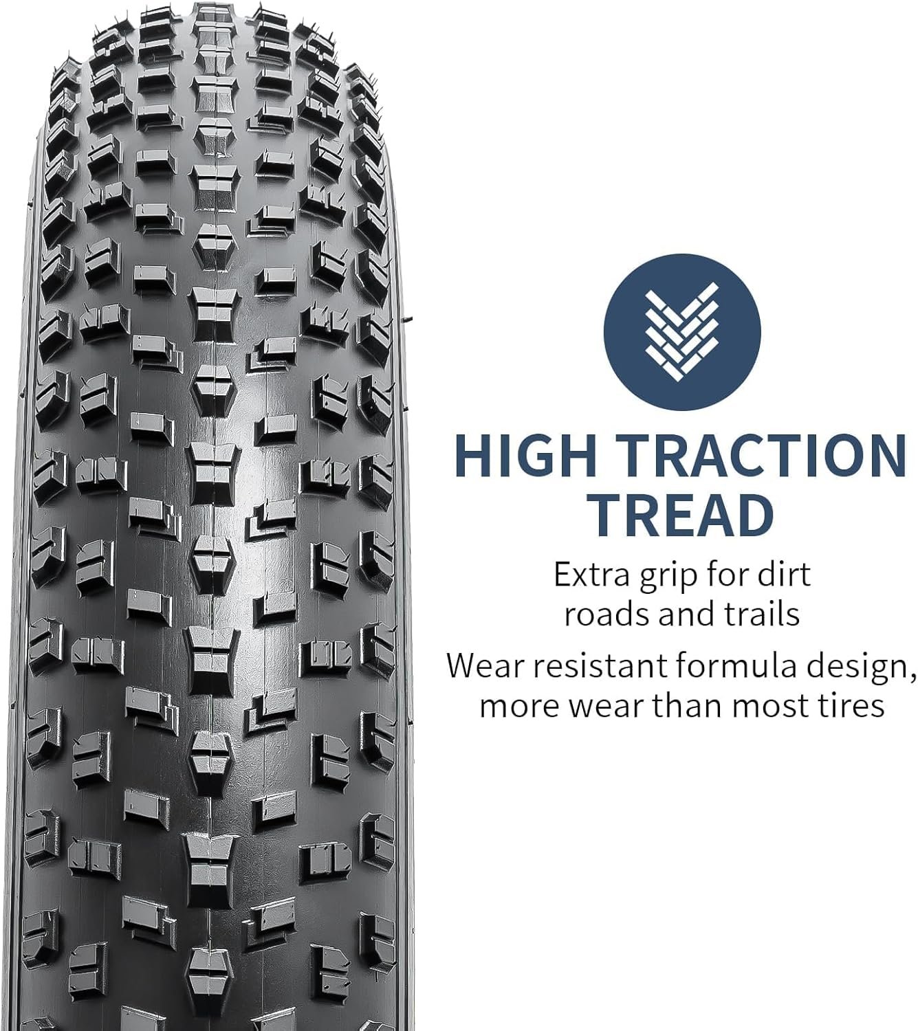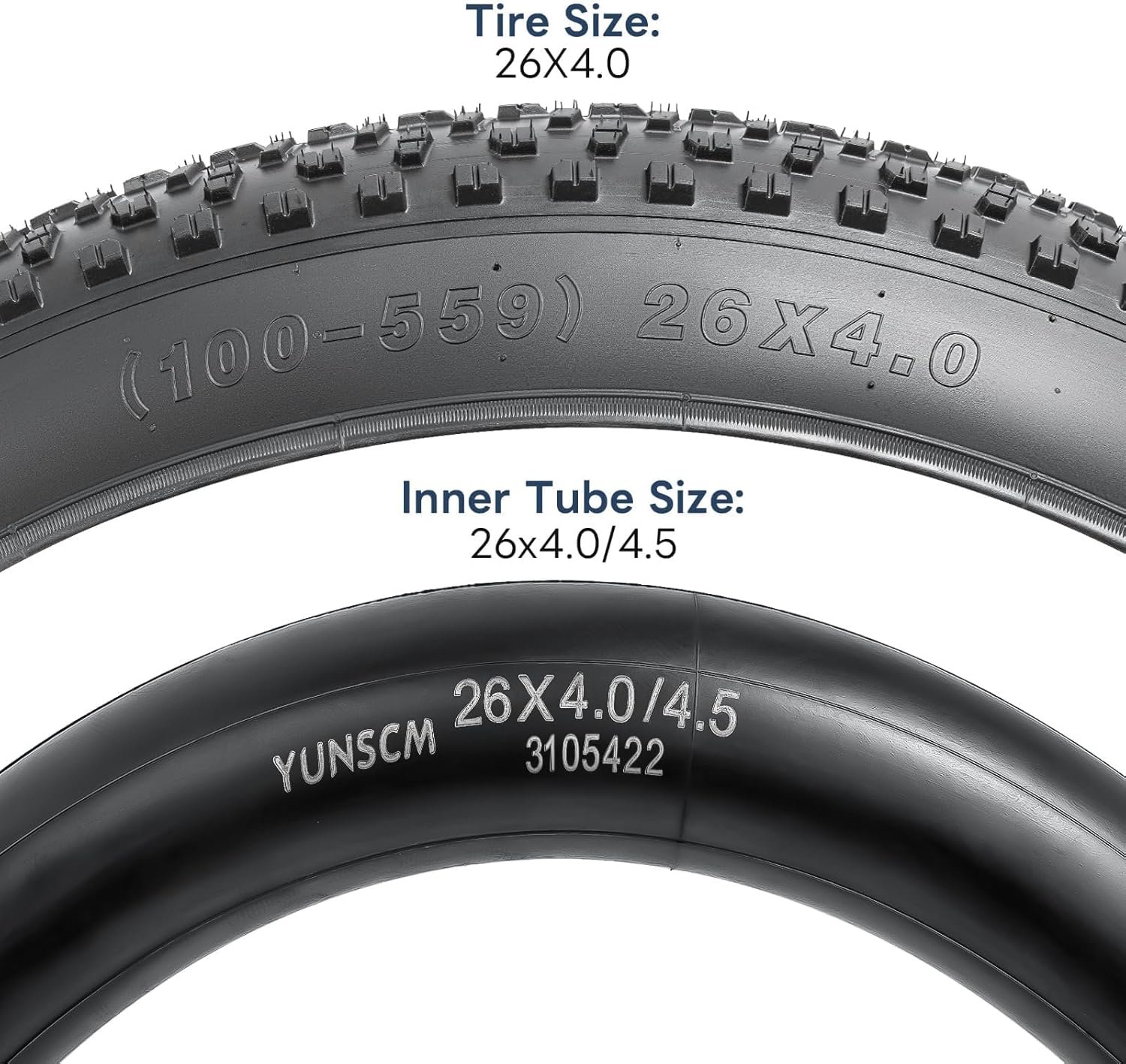 Package Includes:1 pack 26″ Fat Bike Tire 26 x 4.0, 1 pack 26″ Fat Bike tube 26 x 4.0/4.5 AV32mm Schrader Valve heavy duty bike tube.