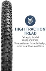 Parameters: Folding Replacement Bike Tire 26×2.35 MAX LOAD 100KG(220 LBS), Inflate to 35-65 P.S.I.(250-450 kPa)