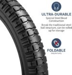 Foldable: The tire is foldable, easier to carry, and can be put in the bag as a spare tire for long trips