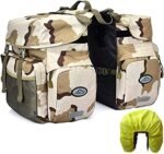 Customers find these bike panniers well-made and functional, with one mentioning they can survive a hundred-mile bicycle trip. The bags are roomy, with one customer noting they can hold a week’s worth of items, and they fit well on disc bikes and folding baskets. Customers appreciate the rain cover and consider them a great value. While customers like the clips that attach to the rear bike rack, they note there are too many tie-down straps.