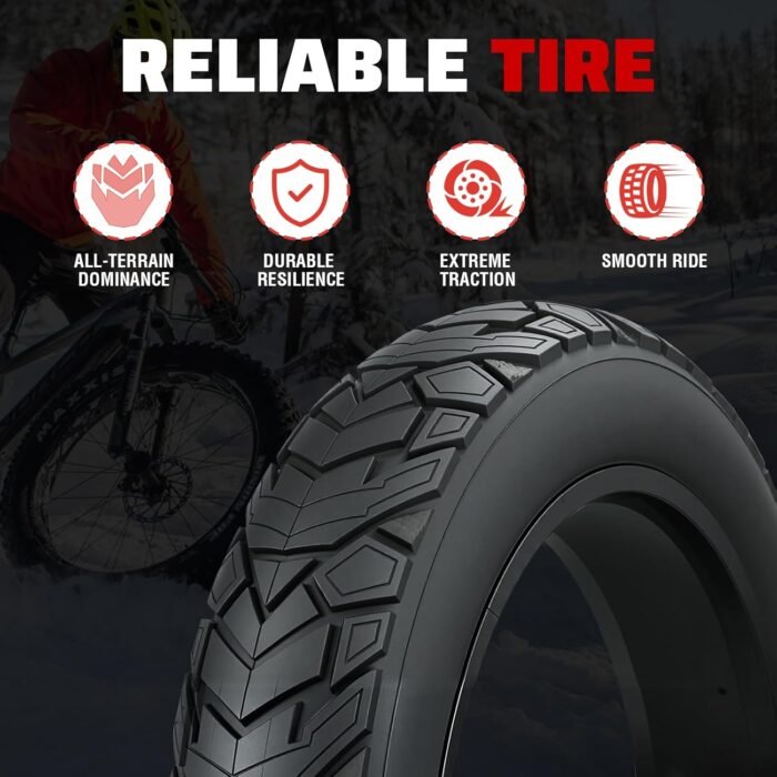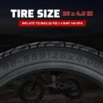 Bike Tire Size: 26×4.0 inch (98-559mm); Inflate to 20 P.S.I ,140KPa(1.4BAR).Suits for mountain bikes, electric bicycles, tricycle, and other types of bicycles.